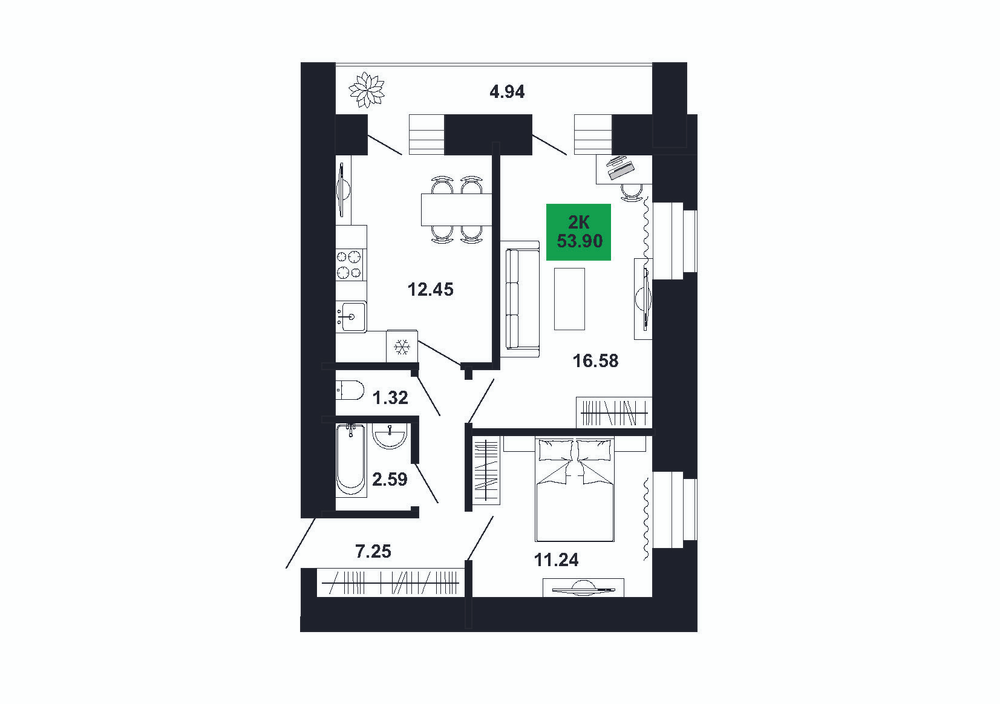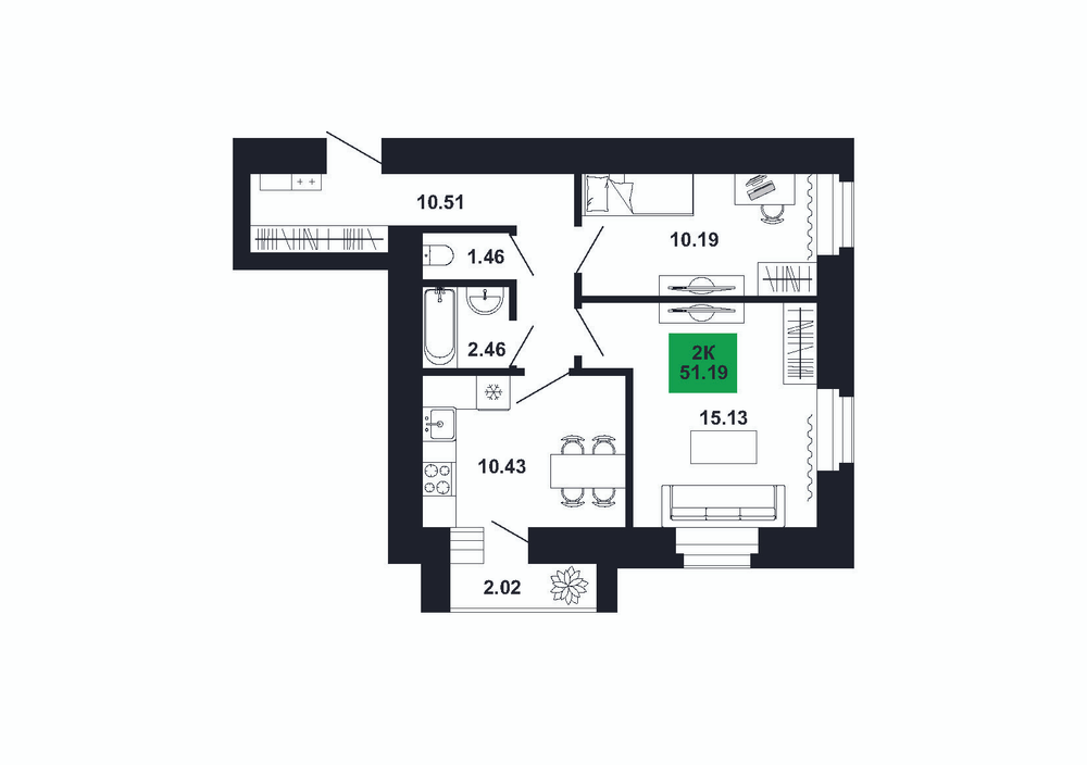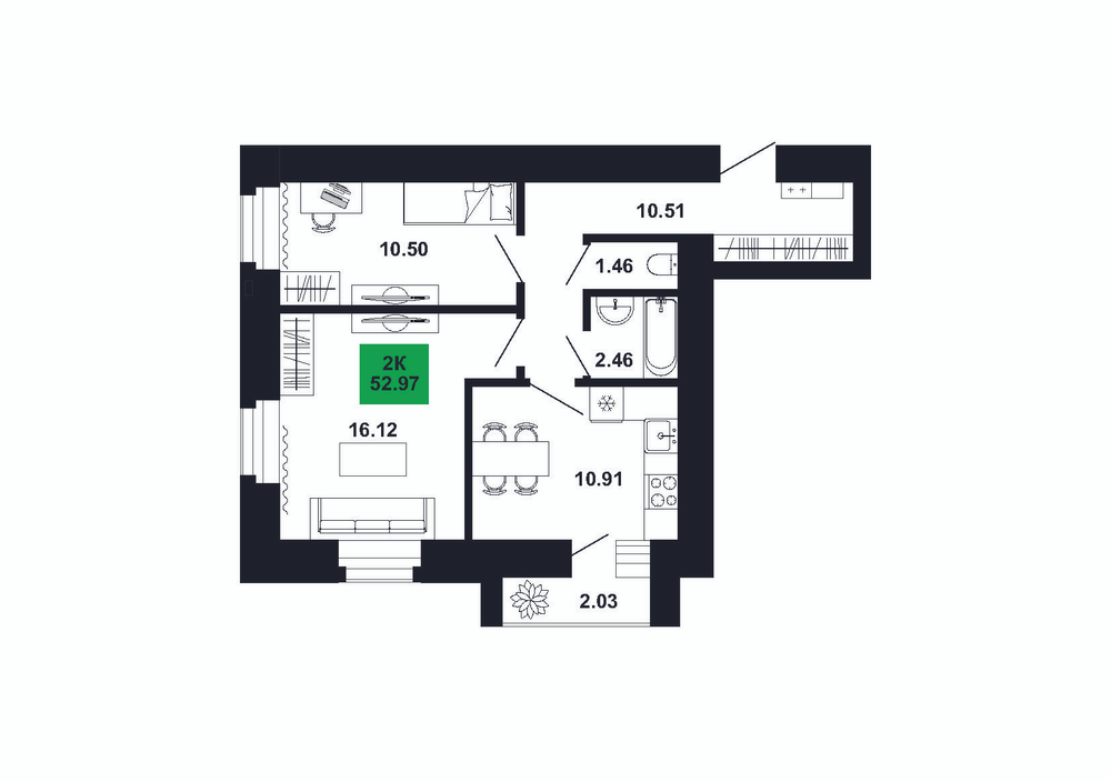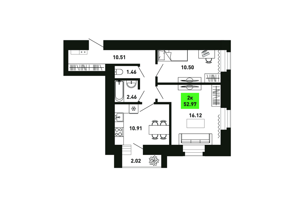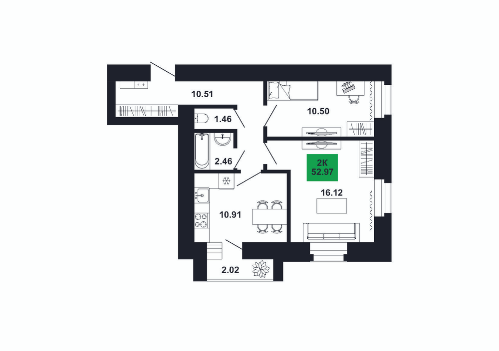 2-комнатная  52.97 м2