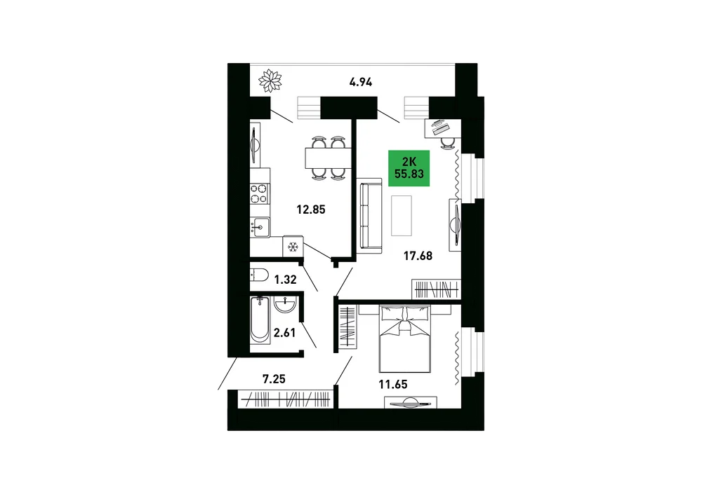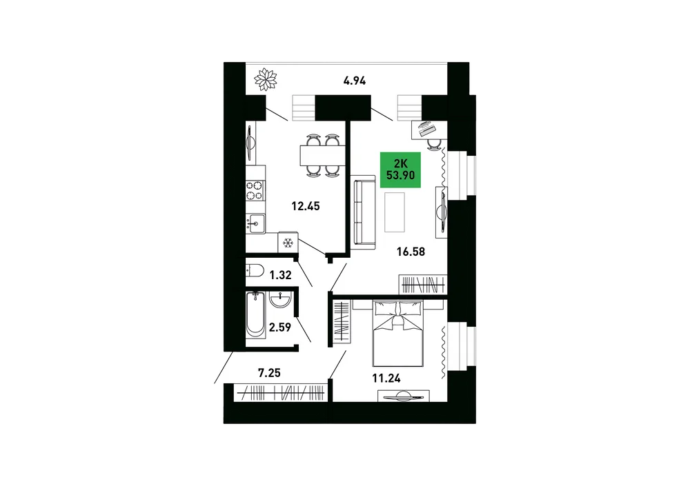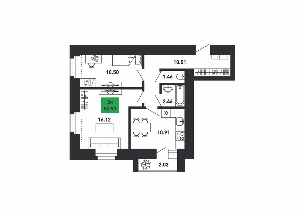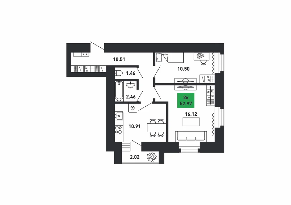 2-комнатная  52.97 м2