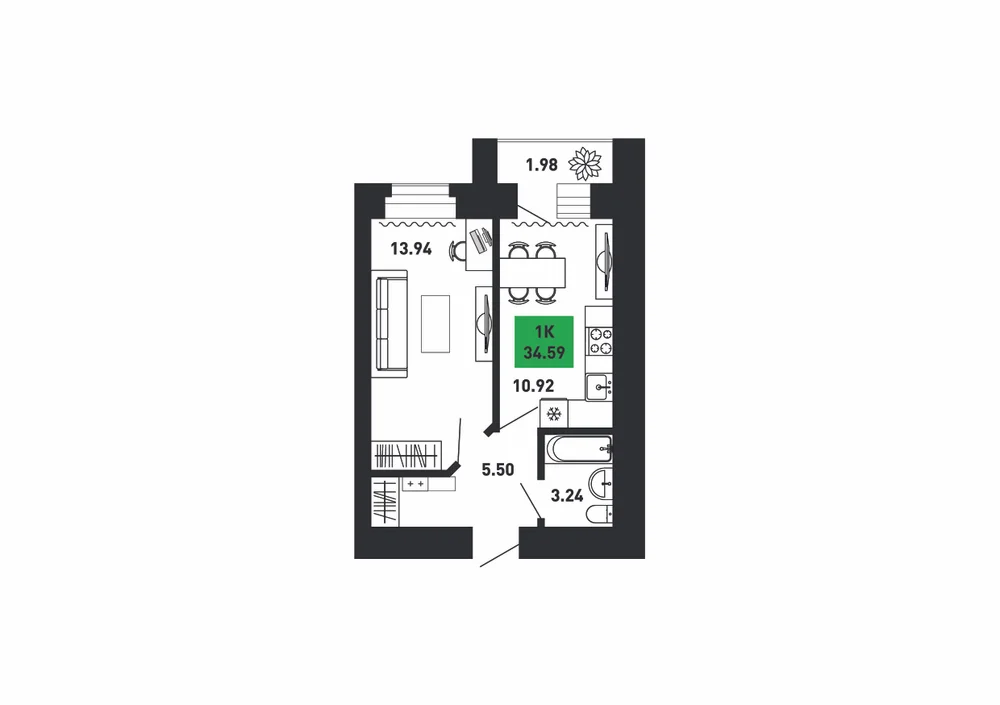 33.93 м2