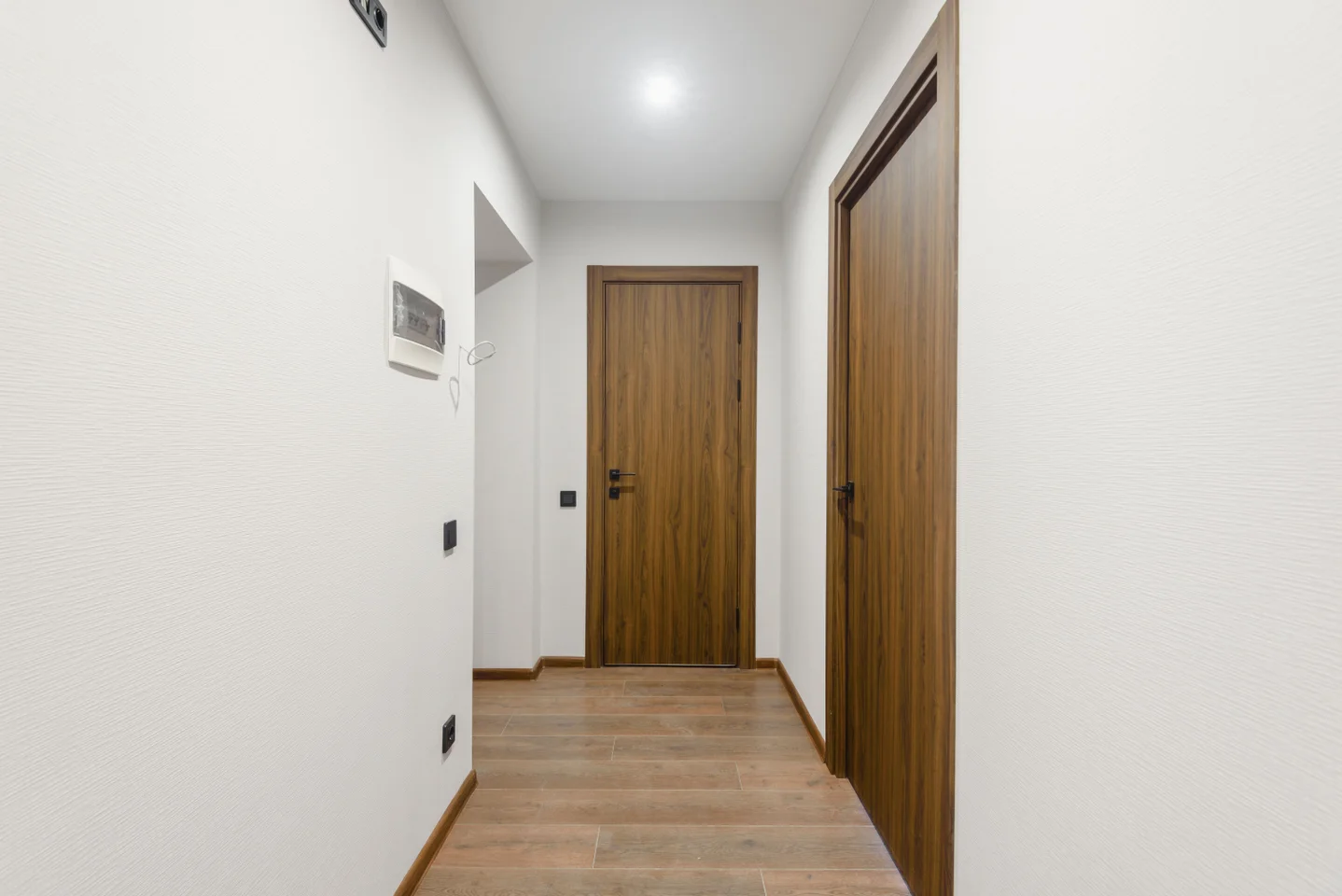 Интерьер в теплых карамельных оттенках создает ощущение уюта. Помещение полностью готово к переезду, вам остается лишь выбрать мебель на свой вкус и расположить необходимую технику.